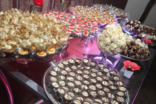 Serviços: organização e cerimonial, decoração, mesa de doces, lembrancinhas, fotografia e iluminação.